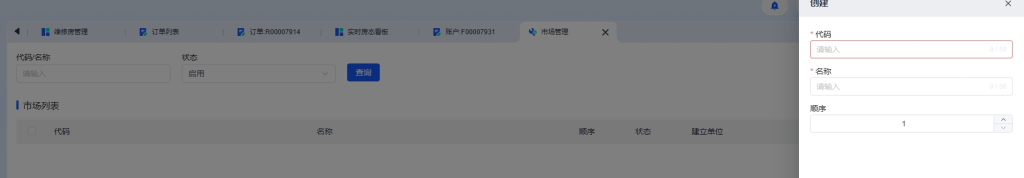 在市场配置界面,您可以设置以下信息: