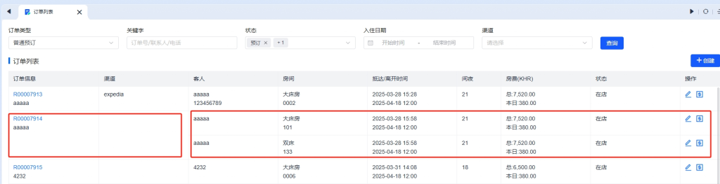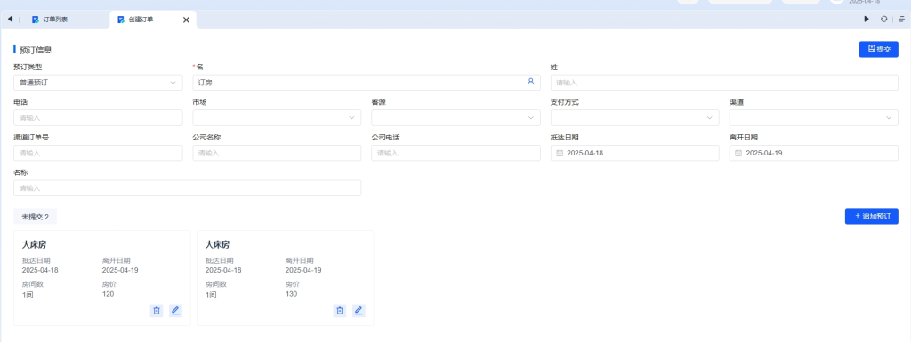 - 创建订单时可添加多个不同房型、不同日期的预订