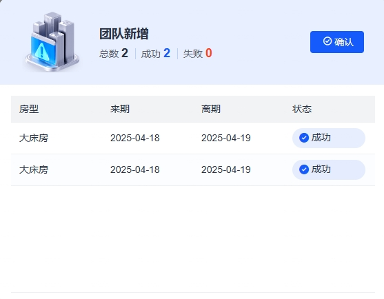 - 团队订单建议使用批量操作功能(分房、入住)提高效率