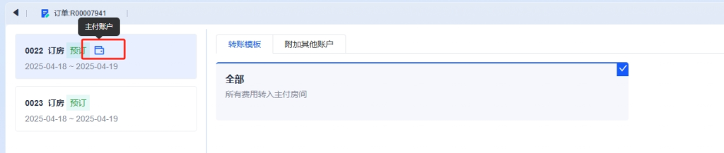 - 设置主付账户后,其他账户的费用会按照转账关系自动转入主账户