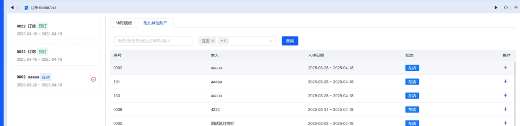 - 添加其他订单宾客:将其他订单的宾客添加到当前订单