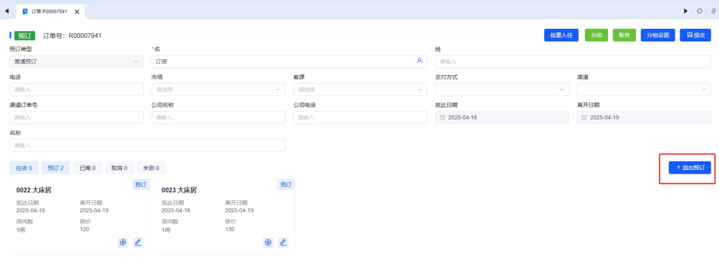Q2: 如何为已创建的订单添加新的预订? A2: 进入订单编辑界面,点击【追加预订】按钮,填写新预订信息并确认。