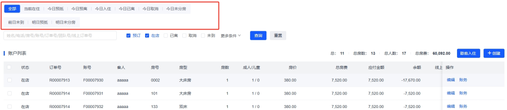 Q5: 如何查看今日需要办理入住的预订? A5: 在顶部查询区域,选择账户状态为”今日预抵”,系统会显示所有预计今日到达的预订。