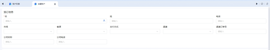 - 在预订信息区域填写客人基本信息: