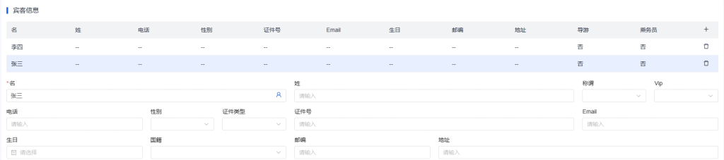 - 点击宾客行末尾的【删除】按钮移除宾客