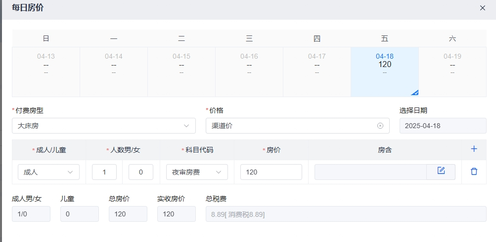 - 多日入住的房价可分别调整,确保每天的房价设置正确