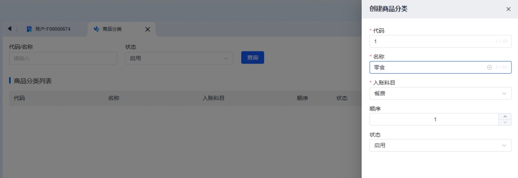 - 系统自动将餐饮商品销售收入计入餐费科目