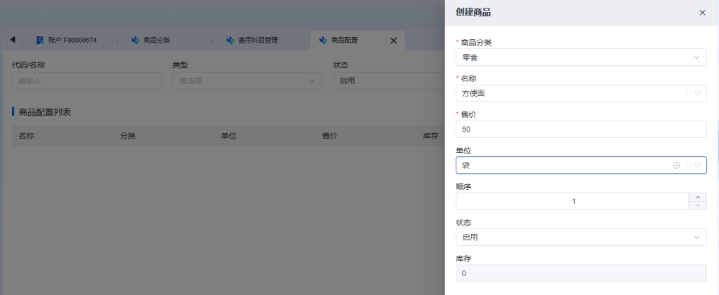 系统配置 → 商品配置 → 商品配置