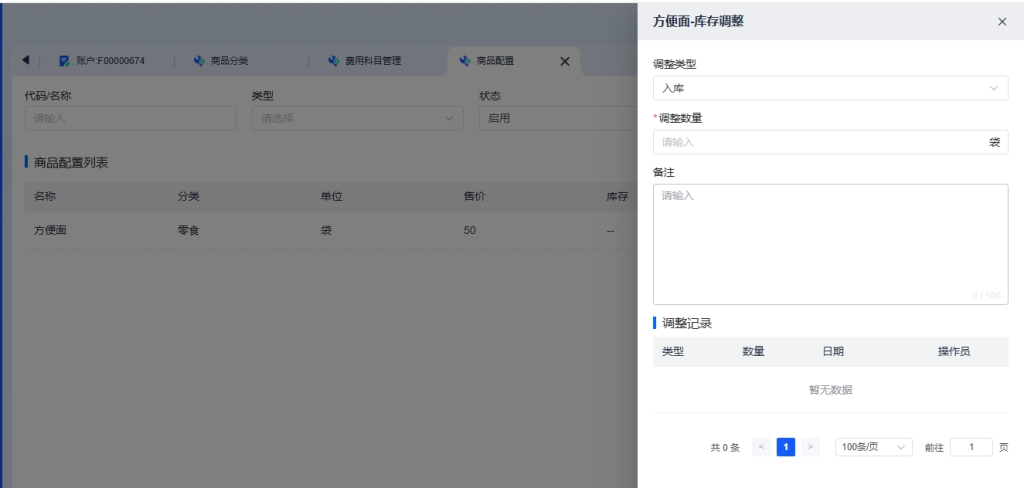 - 点击【库存调整】按钮