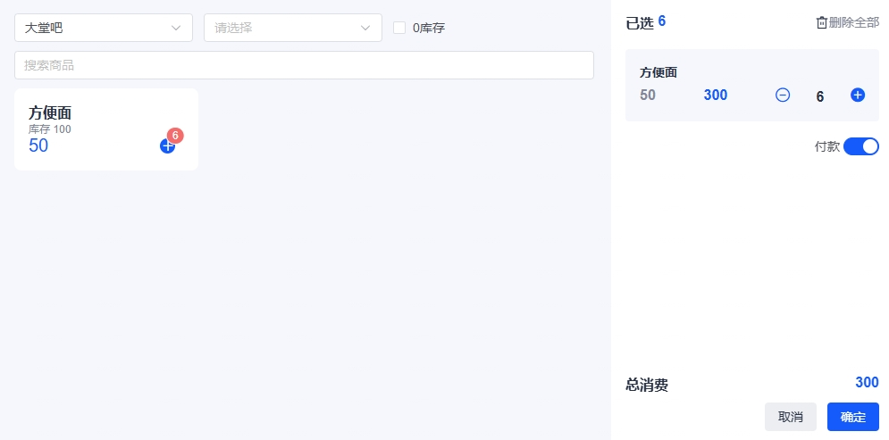 - 大堂吧服务人员可快速选择并销售配置的商品