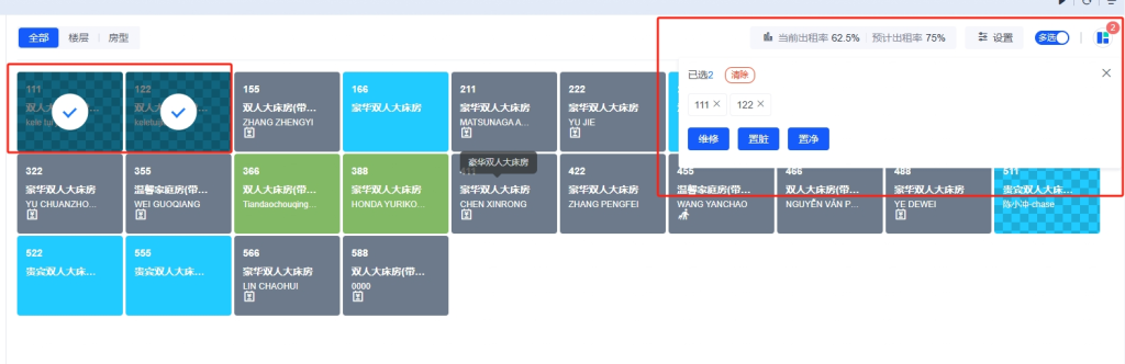 - 批量操作时,请仔细核对选中的房间,避免误操作