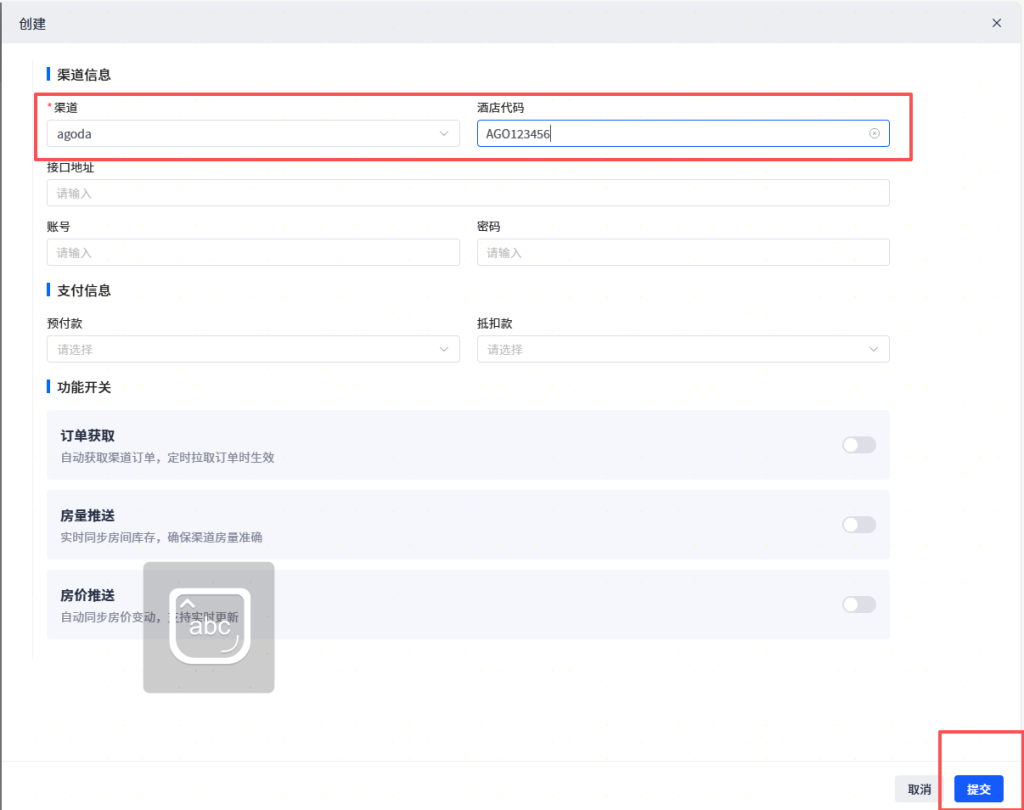 3.2 PMS 系统添加 Agoda 直连渠道